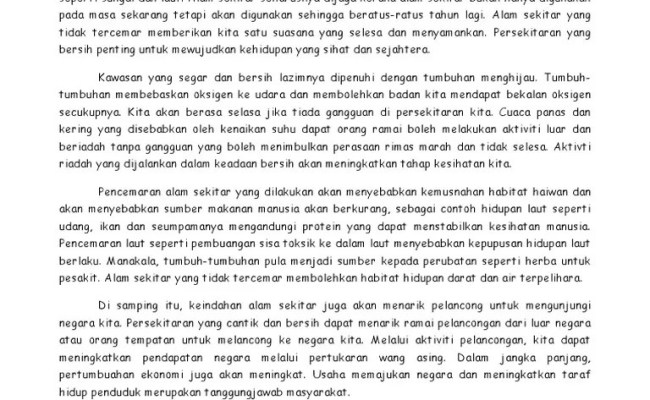 Contoh terbaik karangan alam sekitar, maksud jenis punca pencemaran, kepentingan, langkah memelihara dan mengatasi untuk spm / stpm ulasan pencemaran alam sekitar. Punca pencemaran alam sekitar karangan spm kesan pencemaran udara pembakaran terbuka contoh karangan menyebabkan pencemaran pencemaran .