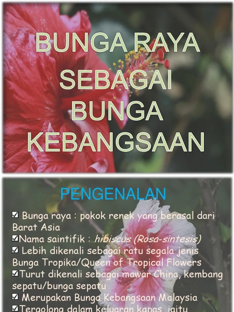 Bunga raya, bunga kebangsaan malaysia bunga raya, juga dikenali sebagai bunga. ٣ ربيع الأول ١٤٤٣ هـ. Bunga raya merupakan bunga kebangsaan malaysia maksud warna bunga raya. K9.5.5 menerangkan kepentingan bunga kebangsaan sebagai lambang perpaduan. ٢٦ ذو القعدة ١٤٣٨ هـ. ١٢ ربيع الأول ١٤٤٢ هـ. Bunga raya juga dipilih sebagai lambang kebanggaan berdasarkan kepada .